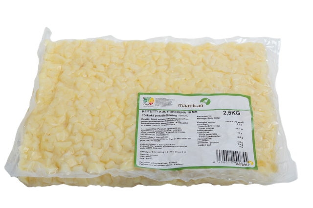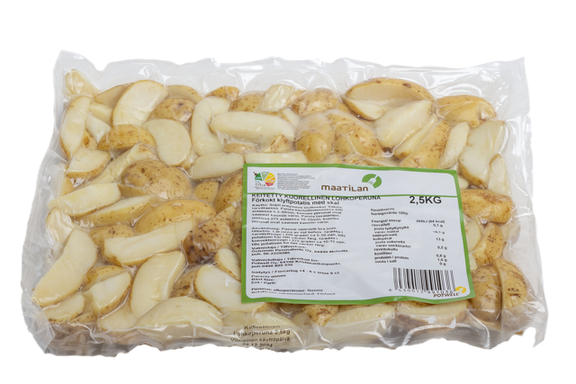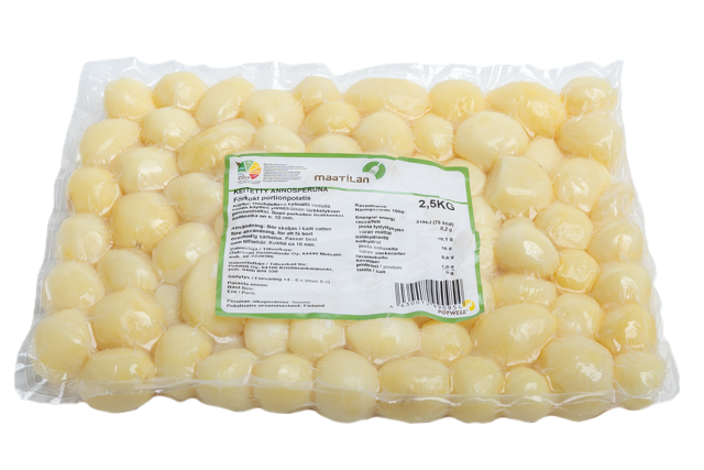 Säästävät valmisteluaikaa ja takaavat tasaisen lopputuloksen suurissa tuotantomäärissä. Yleisimmät käytetyt lajikkeet keitetyissä perunoissamme on Solist, Sunita, Inova, Soraya, Melody, Jelly.