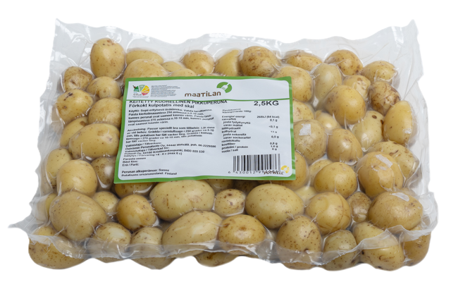 Keitetyt perunat ovat heti valmiita linjastolle tai jatkojalostukseen. Yleisimmät käytetyt lajikkeet keitetyissä perunoissamme on Solist, Sunita, Inova, Soraya, Melody, Jelly.